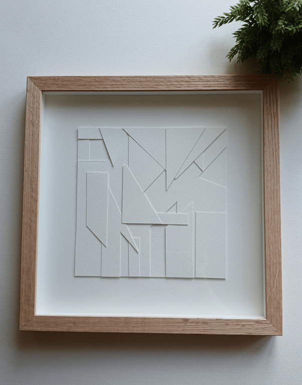 Værket Leveres indrammet I dansk produceret massiv egetræs 3D boxramme med afstandslister og ægte glas