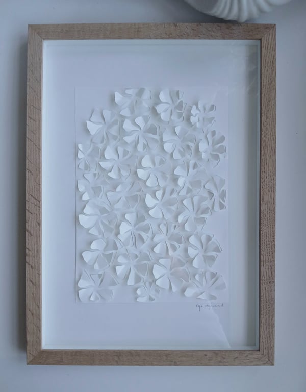 Værket leveres indrammet i dansk produceret massiv egetræs boxramme med glas,Rammens ydremål 32,7x45x3cm