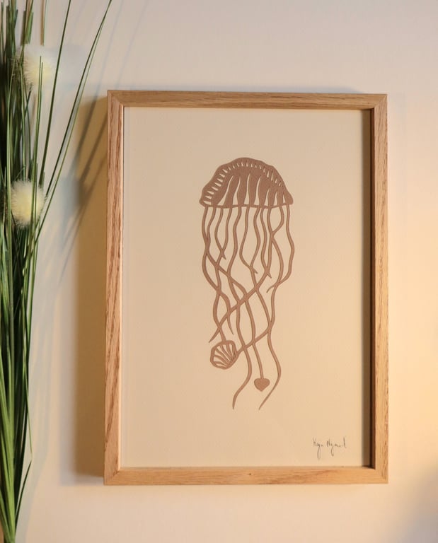 Håndskåret unika papercutUnika gople nr 117Størrelse A4 Nougat på Knækket hvid baggrund Leveres indrammet I dansk produceret massiv egetræsramme med glas.Signeret