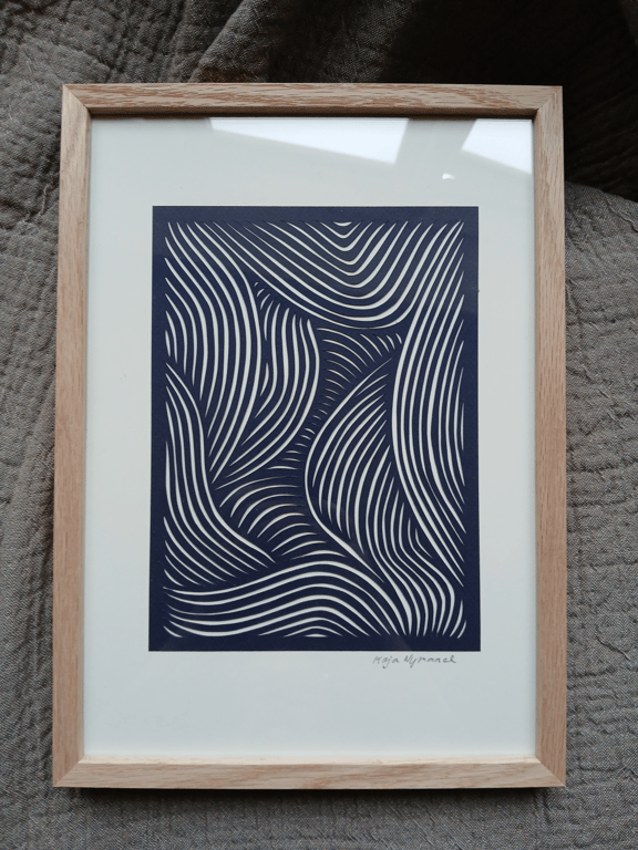 Marineblå værk på naturhvid baggrund, Størrelse A4